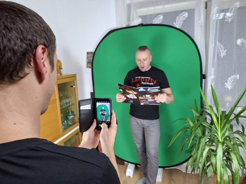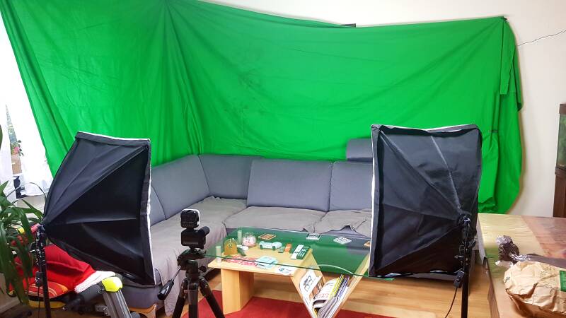 Treffpunkt war 18 Uhr, wir haben zuerst alles aufgebaut für den Dreh vom Video, die grüne Wand, Lichter und so weiter alles perfekt positioniert.
